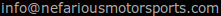 Nefarious Motorsports does not provide any services beyond the information presented on our site. Our site is only meant to provide information regarding our work, to the general public. We try to provide the most up to date and accurate information possible. However, Nefarious Motorsports provides no warranty or guarantee on the information presented on our site. Therefore, Nefarious Motorsports is not responsible for any damages incurred through the use of our site, contractors or suppliers.In a nutshell, if your world ends or is destroyed, it is not our fault.